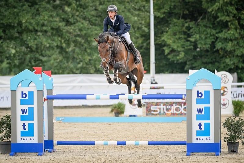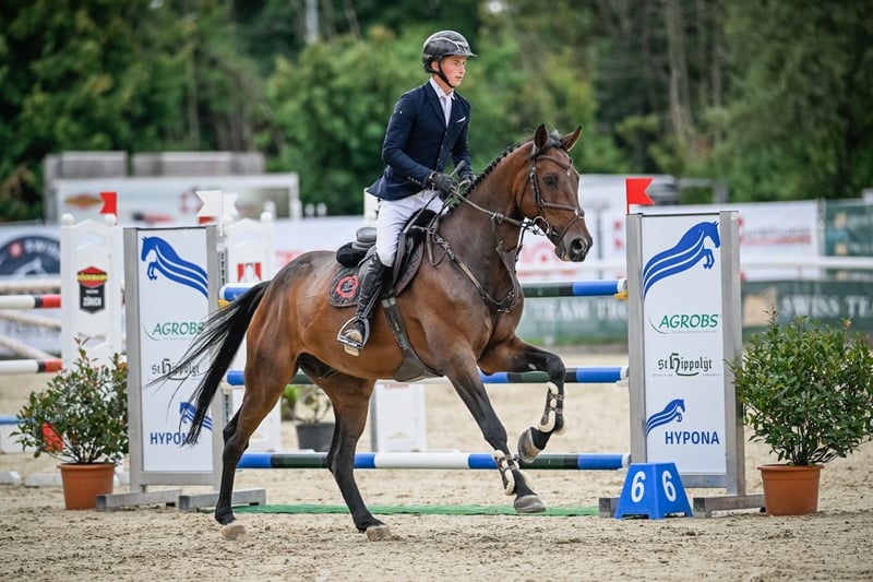 Kingslay Coman is a tall and yet blood-typed gelding for top-level sport. His jumping ability is unlimited and his quality is exceptional. Kingslay is impeccable in handling, affectionate, and enjoys working with people. He is very well ridden and also well trained in dressage, easy to ride, and an excellent partner for any rider. He has demonstrated impressive performances up to 1.35m.