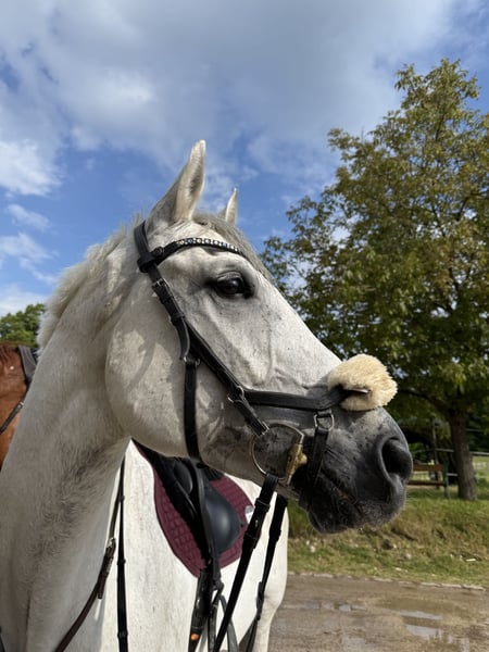 Hannoverian Gelding – Ideal for ambitious riders! This stunning grey, born in 2016, impresses with its noble appearance and excellent jumping abilities. Standing at 16.1 hh, he offers the perfect size for active riders who value quality and a willingness to perform. The Hannoverian gelding impresses with his jump-oriented temperament, eagerness to learn, and friendly nature. He is well-trained, reliable in the show jumping arena, and always shows joy in jumping. A versatile partner for the competitive rider or the ambitious leisure rider looking to develop their skills further. Please feel free to contact me for more information or if you are interested.