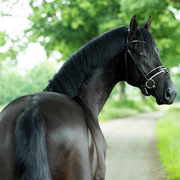 Ein außergewöhnlich eleganter, rein schwarzer Hannoveraner Wallach, der sowohl im anspruchsvollen Springen als auch in der Dressur auf gehobenem Niveau überzeugt. Dieser imposante Sportpartner besticht durch seine harmonische Gesamtkomposition, ein korrektes Exterieur sowie durch seine beeindruckende Präsenz im Viereck und auf dem Parcours. Er verfügt über drei überdurchschnittliche Grundgangarten: einen raumgreifenden, taktsicheren Schritt, einen elastischen Trab mit viel Schwung und einen kraftvollen, gut ausbalancierten Galopp. Am Sprung zeigt er Vermögen, Vorsicht und eine ausgezeichnete Technik, verbunden mit einem natürlichen Überblick und großer Leistungsbereitschaft. Charakterlich präsentiert sich dieser Wallach absolut vorbildlich: rittig, lernwillig, nervenstark und stets motiviert bei der Arbeit. Durch sein ausgeglichenes Temperament ist er sowohl für ambitionierte Amateure als auch für erfahrene Turnierreiter bestens geeignet. Er lässt sich fein an den Hilfen reiten und vermittelt jederzeit ein sicheres, angenehmes Reitgefühl. Der Hannoveraner ist vollumfänglich tierärztlich untersucht, inklusive aktueller, einwandfreier Röntgenbilder sowie vollständiger tierärztlicher Befunde ohne Beanstandungen. Er ist gesund, belastbar und regelmäßig im Training. Ein vielseitiger Sportpartner mit großem Potenzial für den gehobenen Turniersport, der durch Qualität, Einstellung und Rittigkeit gleichermaßen überzeugt.
