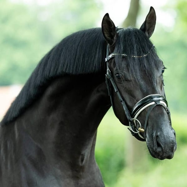 An exceptionally elegant, solid black Hanoverian gelding, excelling in both demanding show jumping and high-level dressage. This impressive sport partner captivates with his harmonious overall conformation, correct exterior, and commanding presence in the arena and on the course. He possesses three above-average gaits: a spacious, rhythmical walk; an elastic trot with plenty of impulsion; and a powerful, well-balanced canter. When jumping, he demonstrates talent, caution, and excellent technique, combined with natural overview and a high willingness to perform. Character-wise, this gelding is absolutely exemplary: rideable, eager to learn, calm under pressure, and always motivated during work. Thanks to his balanced temperament, he is well-suited for both ambitious amateurs and experienced competition riders. He responds delicately to aids and consistently provides a secure, pleasant riding experience. The Hanoverian has undergone comprehensive veterinary examinations, including current, flawless X-rays and complete veterinary reports without any findings. He is healthy, resilient, and regularly in training. A versatile sport partner with great potential for advanced competition, impressing equally with his quality, attitude, and rideability.