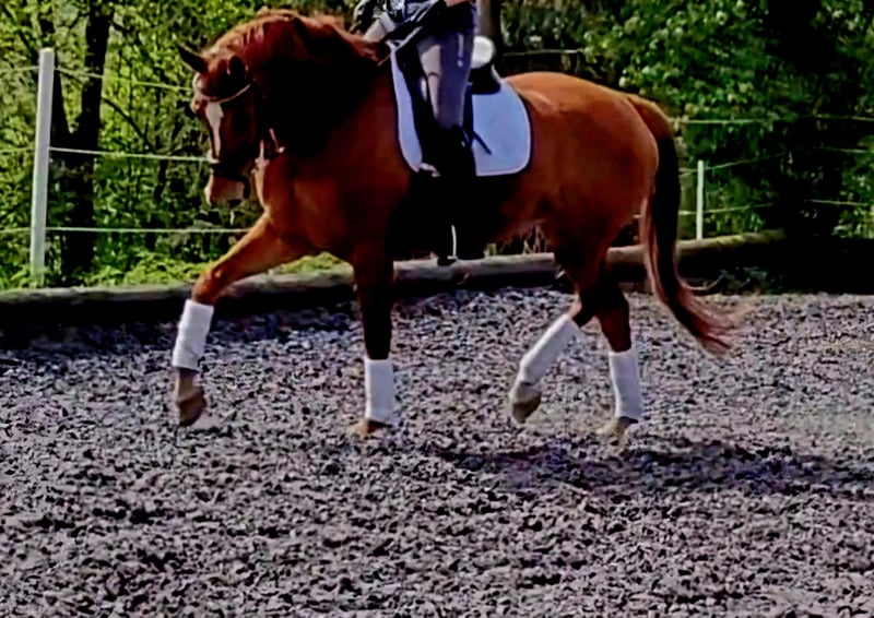 For sale is a 9-year-old gelding. This gelding stands out with his 3 good and comfortable gaits. Placed up to L-level dressage. An ideal junior horse, unused and healthy. He enjoys free jumping and jumping exercises and also loves going out on trails! Riding videos via WhatsApp 0174/9603859.