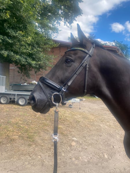 **Sales Advertisement: Hanoverian Gelding** For sale is an impressive, kind Hanoverian gelding, born in 2016. With a height of 179 cm and his elegant black coat, he attracts all attention. This talented gelding is particularly suited for dressage and is already showing promising progress in his training. He has a balanced character and is reliable both in handling and under saddle. He is particularly easy to ride; riding with force and pressure is out of the question!!! Ultimately, he is looking for a good rider who seeks a loyal partner and appreciates the classical values of riding. He should become a partner who develops well with his rider. He is sure-footed in the field and accustomed to large machines and noise. If you are interested or have further questions, please feel free to contact me via email.