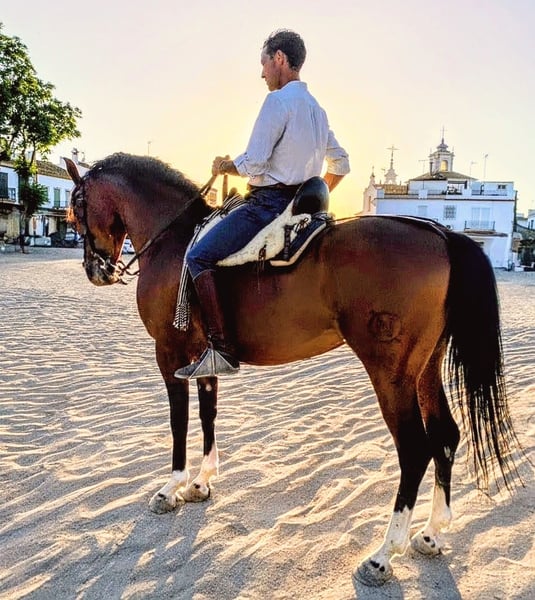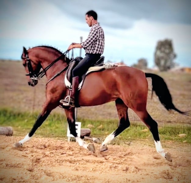 Dieses wunderschöne Traumpferd möchte gern in sein FOR EVER HOME vermittelt werden 🏡 Er ist ein eleganter und vielseitiger Partner sowohl für den anspruchsvollen Reiter,als auch ein top zuverlässiges Pferdchen für den noch etwas ungeübten Wiedereinsteiger. Er vereint einen edlen, hochnoblen Charakter ( wurde zur Zucht eingesetzt) und elegantes Erscheinungsbild mit viel Charme. Mit einer Größe von 1,62m deckt er gut ab,ist aber KEIN Gewichtsträger. Er bringt sehr viel Erfahrung im Gelände mit und wird regelmäßig zu Pilgerreisen,Umzüge aller Art und Ausritte in völlig fremder Umgebung, mitgenommen. In fremder Umgebung ist er NICHT schreckhaft oder unruhig,sondern schaut sich gelassen alles an und geht ohne Zögern vorwärts. In der Reitbahn ist er hochkonzentriert und ehrgeizig - will alles richtig machen. Sehr schnell lernt er neue Lektionen und er hat ein angenehmes Go. Der hübsche Bursche reagiert fein auf die Hilfen und steht sehr leicht am Zügel. Vor nicht all zu langer Zeit wurde kastriert, damit er Zuhause mit anderen Pferden zusammen in einer Herde stehen kann. Der bildschöne Gentleman ist bereits schon recht gut in der Doma Vaquera ausgebildet und beherrscht Lektionen wie: Traversalen in allen Gangarten, Schenkelweichen und Schulter herein, Rückwärts richten und die Galopppioretten,welche immer besser wird. Zusätzlich ist er mit Kandarre, Wassertrense oder auch nur mit Halsring zu reiten. Er war noch nie krank und ist bereit für neue Abenteuer. Wem dieses wunderschöne Pferdchen gefällt, meldet euch bitte mit Telefonnummer, damit ich schnellstmöglich Kontakt zu Euch aufnehmen kann. Er steht in der Nähe von Sevilla. Unter Umständen kann es sein, das Mehrwertsteuer entstehen könnte. Das wird aber einzelfallabhängig immer geprüft. Eine Ankaufuntersuchung kann sehr gerne auf eigene Kosten gemacht werden. Sehr gern arrangieren wir den Transport für Euch 🚛 Wir haben eine große Auswahl an den verschiedensten Pferden in allen möglichen Farben und Ausbildung. Von Fohlen ,über Freizeit- und Fahrpferde bis zum Gran Prix Pferd, ist alles dabei.🐴🐎
