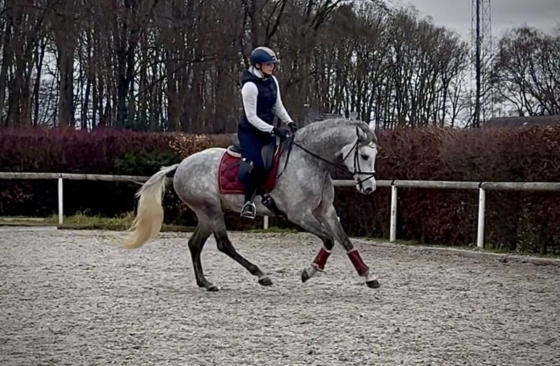 Name: Orfebre MG Rasse: Hispano Araber Geschlecht: Wallach Geburtsdatum: 25.06.2021 Alter: 4 Stockmaß: 1.54m Farbe: Schimmel Abstammung: mit Abstammungsnachweis Charakter: menschenbezogen, lernwillig, verlässlich, geduldig, neugierig, intelligent, mutig Ausbildung/Eignung: geritten, Dressur, Freizeit, Wanderreitpferd, Distanzpferd, Working Equitation Geländeerfahrung: zuverlässig, unerschrocken, nervenstark, alleine und in der Gruppe Gesundheit: entwurmt, geimpft, Barhufer, ekzemfrei, Zähne kontrolliert, ostheopatisch behandelt Haltung: Box, Offenstall Besonderheiten: sehr schöne Grundgangarten, schmiede und verladefromm, herdenverträglich Die genannten Eigenschaften beruhen auf unserer persönlichen Einschätzung und stellen keine zugesicherten Merkmale dar. Preis: 8500€ (Bruttopreis) Haben wir ihr Interesse geweckt? Um Ihnen einen besseren Eindruck von Orfebre zu geben, senden wir Ihnen sehr gerne sein Reitvideo zu. Selbstverständlich stehen wir Ihnen für eine ausführliche Beschreibung des Pferdes, persönliche Beratung und zur Beantwortung aller Ihrer Fragen auch telefonisch zur Verfügung. Bitte schreiben Sie uns hierfür jederzeit eine WhatsApp Nachricht, oder rufen unter folgender Telefonnummer an: +49 15119487595 Unsere Telefonzeiten sind täglich von 7:00 - 13:30 sowie ab 20:00Uhr. Wir freuen uns über Ihre Kontaktaufnahme! Eine klinische oder Röntgenologische Ankaufsuntersuchung kann gerne vom Tierarzt Ihrer Wahl durchgeführt werden. Natürlich kann Orfebre sicher und komfortabel in sein neues Zuhause geliefert werden. Wir kümmern uns um alle notwendigen Vorbereitungen und den Transport, damit Ihr neues Pferd stressfrei, gut betreut, versichert und wohlbehalten im neuen Zuhause ankommt. Zurzeit präsentieren wir eine sorgfältig ausgewählte Vielfalt an Verkaufspferden. Bei uns finden Sie garantiert Ihr Traumpferd. Besuchen Sie uns auch gerne auf unserer Homepage unter: www.marvinsroyalhorses.de. Sehr geehrte Kunden, gerne stellen wir Ihnen unsere Pferde vor und führen, putzen, satteln, longieren, Bodenarbeit sowie Probereiten in der Reithalle, auf dem Platz oder im Gelände ist Ihnen möglich, um Ihr neues Familienmitglied näher kennenzulernen. Dieses kostet für ein Pferd 40€, für jedes weitere 30€ und wird beim Kauf wieder erstattet. Unsere Adresse lautet: Grube Ferdinand 50 53577 Neustadt Wied Google Maps: marvinsroyalhorses