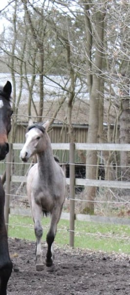 We are offering our beautiful stallion "Concorde" from Casall x Del'Arko for sale from our breeding program. He was a promising young stallion candidate with his modern, athletic appearance and a typy head. As a foal, he already placed at the Foal Championship and was a real eye-catcher. Unfortunately, one testicle has not descended and is still located in the inguinal region, so we must sell him as a cryptorchid (rig stallion) due to our downsizing of the breeding operation. Concorde is also a wonderful character for a yearling, very gentle and well-mannered in handling. He grew up in a stallion herd during the summer and has developed beautifully there. He demonstrates impressive movement, and nothing stands in the way of a sporting career. A veterinary examination (AKU) can be arranged at any time for serious interest. Current videos are yet to be taken, as he has recently returned from the stallion pasture to us for the winter. Since we are currently reducing our Holsteiner breeding, please feel free to browse our other listings as well.