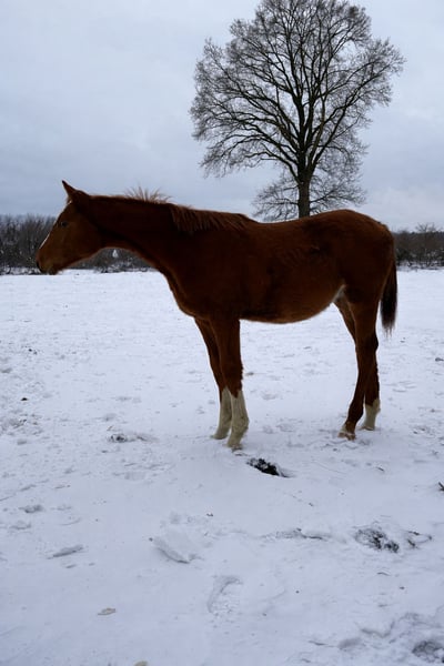 Zum Verkauf steht ein vielversprechender Holsteiner Hengst von Deichkind aus einer Amigo xx - Alcatraz - Wildfeuer - Anklang Mutter, geboren im Mai 2025 Für dieses wunderschöne Holsteiner Hengstfohlen wird ein neues, passendes Zuhause gesucht. Er sucht nun seinen Menschen, der sein großes Potenzial erkennt und ihn liebevoll weiter fördert. Er ist unglaublich zutraulich, neugierig und menschenbezogen und mit Freude bei der Sache. Auch seine Bewegungen sind überdurchschnittlich schön, mit viel Schwung und Elastizität in allen drei Grundgangarten. Er wird ein großrahmiger, beeindruckender Wallach oder Hengst werden. Das Wichtigste auf einen Blick: • Rasse: Holsteiner • Geschlecht: Hengst • Charakter: sehr menschenbezogen u. lernfreudig • Bewegung: ausdrucksstark und taktsicher • Besonderheit: tolle Farbe & viel Ausstrahlung • Abgabe: ab sofort Aktuelles Stockmaß: 1,45 (ausgewachsen geschätzt 1,70 +) Ich wünsche mir für ihn ein Zuhause, in dem er mit Herz, Verstand und Zeit groß werden darf. Wichtiger Hinweis: Für die Qualität, Abstammung und das Potenzial dieses Hengstfohlens ist es ein mehr als faires Angebot. Da er sich in seinem Aufzuchtplatz nicht wohlgefühlt hat, wünschen wir uns für ihn zeitnah eine Veränderung und geben ihn daher für Kurzentschlossene schnellstmöglich zu preisgünstigen Konditionen ab. Der Transport kann nach Absprache im Umkreis von bis zu 30 km übernommen werden.