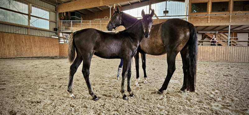 We are offering a highly promising yearling stallion from top-quality show jumping bloodlines for sale, due to time constraints. His pedigree speaks for itself: his sire is the renowned Diarado, an internationally successful show jumper known for his exceptional technique, rideability, and strong inheritance. Diarado is one of the most sought-after sires of his generation, symbolizing performance and elegance. His dam’s sire is Catoo, a Holsteiner elite stallion distinguished by excellent basic gaits and a calm, balanced temperament. This combination makes the stallion a true future prospect for sport and breeding. The stallion impresses not only with his outstanding lineage but also with his quality: he has wonderful, elastic basic gaits with plenty of balance and expression. His character is friendly, confident, and uncomplicated—making handling a pleasure. He loads easily and has already been basic immunized. We would like to be transparent about a special feature: due to a fully healed eye injury, he is offered at a significantly reduced price. A light scar is visible in the corner of his left eye, but it does not impair his vision. The eye is non-reactive, and the pupil is intact. A veterinary report can be provided upon request to confirm his soundness. This yearling combines excellent bloodlines with remarkable movement potential and a pleasant temperament. He is an ideal choice for ambitious riders or breeders who value proven genetics and sporting prospects.