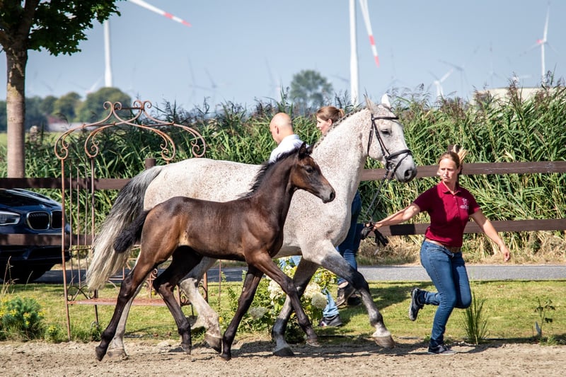 Te koop staat een hengstveulen van Vigado, moeder van Claudio. Veneo was kampioensveulen in Dithmarschen! Hij is zeer correct, beschikt over uitstekende bewegingen en heeft een prachtig gezicht. Zijn moeder Eclipse komt uit stam 318A2. Grootmoeder Jasmin bracht de gekeurde hengsten Conrad van de Mispelaere (springen 1,45 m) en Quidams Acord, evenals de sportpaarden Queen (1,40 m), Horse Gyms Joyfull (1,45 m) en Veronika (1,30 m). De directe moederlijn is die van de Bundessiegerstute Dominique v. Falcon. Vraagprijs in overleg.