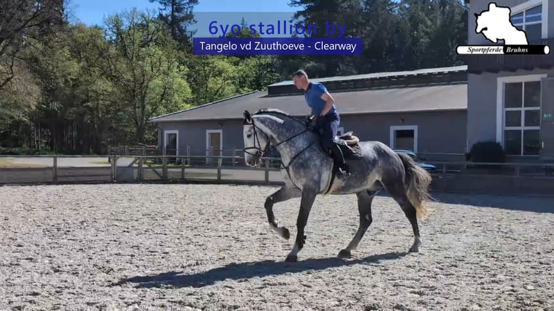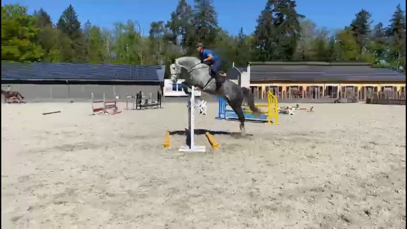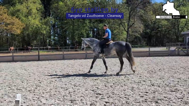 "Theo" has already successfully placed in show jumping competitions up to 1.20m at the age of 5. In our stable, he presents himself as a stallion with an impeccable character. Despite his size, he is fine and easy to ride, jumping with power and ability. His extremely good riding qualities and the easy course feeling he conveys make him a horse that one truly enjoys saddling. At the best age, he is ready this year to tackle more challenging tasks and further develop into a very good show jumping horse.