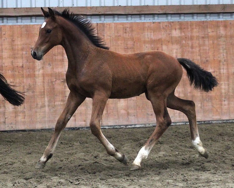 Authentic colt from a successful dam line for sale. Corsentos SKH was born on April 14, 2025, at Stall Krohn. His dam, “Leilani SKH” (Cornet Obolensky – Calato – Concerto II), was foaled in 2018 at Stall Krohn and has been used as a broodmare ever since. She has produced two foals to date. Corsentos SKH’s granddam, “Viola XI” (Calato – Concerto II – Joost), hails from the renowned Holsteiner Stamm 628B. Born in 2005 at Stall Krohn, she was used as a broodmare until 2024. She has produced nine foals so far, including: - “Quintino” by Quidam de Revel, born in 2011 – Approved in Zangersheide – Successful in show jumping competitions up to 145 cm - “Leilani SKH” by Cornet Obolensky, born in 2018 – Active as a broodmare at our stable Great-granddam “Lady Mobilcom” (Concerto II – Joost – Lago Maggiore) was foaled in 1996 in Hedwigenkoog by Otto-Boje Schoof. Lady Mobilcom was the winner of her mare performance test and confirmed this outstanding performance as vice-champion at the Elite Mare Show in Elmshorn and again as vice-champion at the European Mare Show in Brussels in 1999. She joined Stall Krohn in 2005. Special importance is attributed to her sire, “Concerto II,” by “Lady Mobilcom.” Born in 1992 (Contender – Ahorn Z – Wahnfried) and bred by Otto Peters, “Concerto II” sadly passed away after only five years, but not before passing on his exceptional qualities. Initially, his offspring were considered somewhat lacking in rideability due to their high energy and ambition in the jumping arena. However, this trait ultimately proved advantageous. He was only used at stud for three years before his death. His significant breeding value is reflected in the high caliber of his progeny, making him one of the most valuable sons of “Contender.” “Lady Mobilcom” produced ten foals, among them: - “Cabachon” by Casall, born in 2004 – In 2009, “Cabachon,” with Norwegian rider Stein Endresen, was a finalist at the World Championships for Young Jumping Horses in Lanaken, Belgium. He achieved further success in international competitions with Oleg Krasyuk, Ulrich Kirchhoff, and Katharina Offel. In 2013, he placed third in the Grand Prix of Rastede and continued his sporting career successfully in 2014 with young rider Mathis Schwentker. As a breeding stallion, “Cabachon” made a significant impact in Scandinavia, being the most-used jumping stallion in Sweden in 2010. He has passed on his qualities impressively to his offspring, such as “Camelot 143” (Cabachon – Baloubet du Rouet – Quilot Z), who won the Grand Prix of Riesenbeck in 2023. From the Holsteiner Stamm 628B, numerous international sport horses have emerged, including: - “Carino” (Ulrich Kirchhoff) - “Classic H” (Toni Haßmann) - “Alcazaro” (Jürgen Kurz) The Stamm has also produced several approved stallions, such as: - “Lavaletto” - “Romantiker” - “Broker I” The sire of “Corsentos SKH” is Casentos (Casall – Cardento – Quo Vados I).