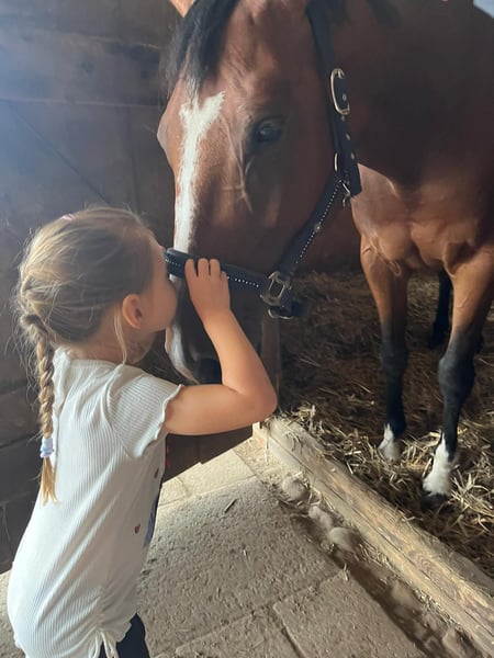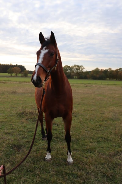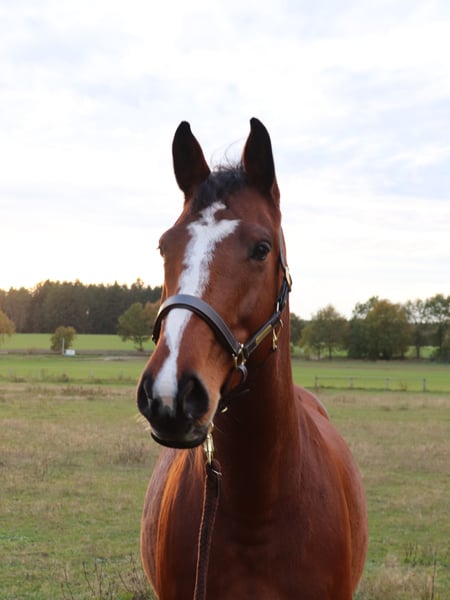 I am heartbroken to part with my 10-year-old Holsteiner mare, whom I am seeking to place in caring, loving hands. Unfortunately, I simply do not have enough time to give her the attention she deserves, and she has earned so much more. She stands at 16.1 hands, is incredibly affectionate and cuddly—truly a lap horse. She loves to be pampered and enjoys cuddling immensely! When it comes to riding, she has always been very well-behaved with us; we have ridden her both in the arena and in the field. However, I would not consider her suitable as a beginner or youth horse. This spring, she sustained a splint bone fracture, which was surgically treated and has healed well. Due to my limited time, she is not ready to be ridden immediately. Gentle trail rides at a walk are possible, and she can be gradually conditioned for more. Since she has some issues, she should no longer be used for competitive sport (she has competed in A-level show jumping with juniors). I am happy to discuss this in a personal conversation. But if you enjoy hacking, some dressage, or ground work, she could make a very happy partner. A bit of time and training would be necessary beforehand—she particularly enjoys equine kinetik exercises. Her pedigree might also make her interesting for breeding, with Stanfour 4 x Sir Shostakovich xx. She is not intended for stabling alone; she prefers an open stable or pasture. She should only have turnout for a few hours at a time, as she is somewhat light in weight. She is easy to load and stands well for the farrier. She is barefoot and does not need shoes. She has all necessary vaccinations and has been regularly dewormed. Her teeth were checked and treated in November 2024, and she has been regularly seen by an osteopath. A health certificate from March 2022 is available. I will only rehome her if everything feels right—dealers have no chance! Please only contact me if you are genuinely interested!