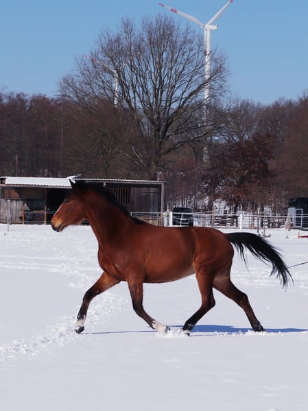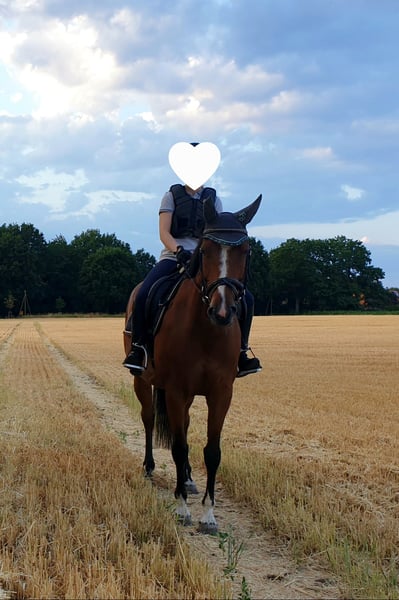 Ich möchte schweren Herzens meine 10jährige Holsteiner Stute in liebevolle Hände abgeben. Mir fehlt einfach die Zeit ihr gerecht zu werden und das hat sie nicht verdient. Die Süße ist 1,62 m groß, unheimlich anhänglich & kuschelig, eine richtige Schmusebacke. Sie genießt kuscheln sehr! Beim Reiten war sie bei uns immer super brav, wir sind sie im Gelände und auf dem Platz geritten, trotzdem würde ich sie nicht als Kinder- oder Jugendpferd verkaufen. Dieses Frühjahr hat sie sich ein Griffelbeinbruch zugezogen, der operiert wurde und gut verheilt ist. Ein Pferd zum sofort losreiten ist sie aufgrund meines Zeitmangels leider nicht. Gemütliche Schrittrunden im Gelände sind aber möglich und es darf langsam gesteigert werden. Da sie Baustellen hat, sollte sie sportlich nicht mehr eingesetzt werden (sie ist A- Springen unter Junioren gelaufen). Dieses erkläre ich gerne in einem persönlichen Gespräch. Wer aber gerne ausreitet, etwas Dressur reitet oder gerne Bodenarbeit macht, den kann sie bestimmt sehr glücklich machen. Ein bisschen Zeit & Aufbautraining müsste man aber vorher investieren! Sie hat z.B. Spaß an Equikinetik. Aufgrund Ihrer Abstammung wäre sie vielleicht auch für die Zucht interessant, Stanfour 4 x Sir Shostakovich xx. Sie wird nicht in eine reine Boxenhaltung abgegeben, am liebsten in einen Offenstall. Weide sollte ihr nur stundenweise zur Verfügung stehen, da sie eher leichtfuttrig ist. Sie ist artig beim Verladen und beim Hufschmied, läuft barhuf und benötigt keine Eisen. Sie hat alle wichtigen Impfungen, wurde regelmäßig entwurmt. Ihre Zähne wurden im November 2024 gemacht und sie wurde regelmäßig beim Osteopathen vorgestellt. Eine AKU aus März 2022 liegt vor. Abgeben werde ich sie nur, wenn alles passt! Händler haben keine Chance! Bitte nur bei ernsthaftem Interesse melden!
