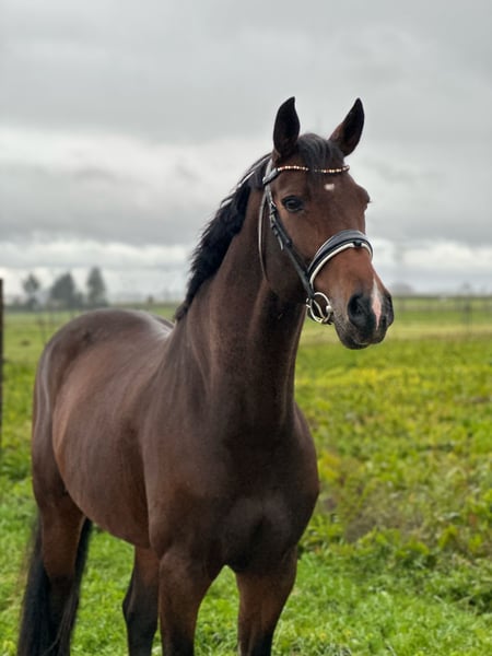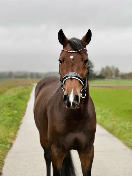 This sturdy, almost masculine mare (but clearly a female at heart 😆) is truly a beauty. She is very well-behaved and pleasant in handling, and also extremely gentle and sociable with other horses. Under saddle, she is incredibly comfortable and equipped with normal but very correct gaits, making her very likely to perform extended canter and various dressage and class L exercises. She has also been ridden by less experienced riders and adapts well under structured management. Nevertheless, in my opinion, she is not a pure beginner’s horse. In the field, she prefers to be out in a group and loves her daily turnout on the paddock or pasture! The mare is very versatile in her training but truly excels in leisure riding. With mutual chemistry, she can be a lifelong partner.