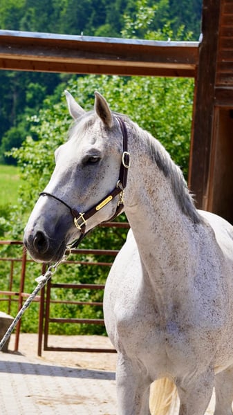Z ciężkim sercem musimy niestety rozstać się ze wszystkimi naszymi końmi z powodu żałoby. Dotyczy to również naszej wspaniałej Guyany. Jest to piękna klacz o dużej ramie, która była źrebna z łatwością każdego roku w ciągu 4 lat spędzonych z nami, dała nam wspaniałe potomstwo i jest mamą z sercem i duszą. Pochodzi z wybitnej holsztyńskiej linii klaczy 318D2. Jej bezpośrednia linia matki dała już wiele koni odnoszących sukcesy w konkursach skoków 160 cm, a także licencjonowanych ogierów, w tym Corofino I i II oraz Coriano. Horsetelex link of Guyana: https://www.horsetelex.de/horses/pedigree/1638966/guyana Guyana ma obecnie świetnego źrebaka po Duplexx i jest ponownie źrebna po Diarado. Można ją odebrać po odsadzeniu na początku grudnia. Chcielibyśmy, aby Guyana znalazła dom u pasjonata i hodowcy, u którego będzie mogła zostać mamą jeszcze wiele razy.