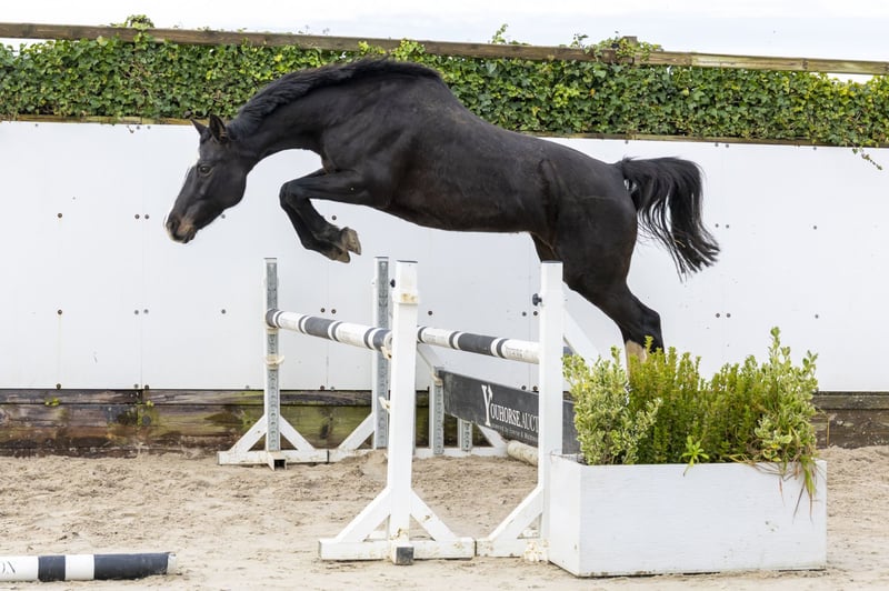 Fairmont VA is offered as a broodmare. She is a very attractive, modern type mare with an uphill build and a good canter. She produced a foal last year and shows quality in her movement and jumping. She jumps with a good technique, is light-footed, quick and able to accelerate easily. A mare with blood and athleticism, making her very interesting for breeding. Sire Centurion (Cormint x Calido I) competed at 1.25m level and combines the performance blood of Cormint (1.30m) with Calido I, one of the most influential Holsteiner sires, responsible for numerous 1.60m horses. This sire line is known for scope, reflexes and mentality. Dam W-Cassady Z (Cassini I) comes from an exceptionally strong Holsteiner performance family. She produced Daikon(by Dominator 2000 Z), an approved Holsteiner stallion competing at 1.35m level with international placings in Vejer de la Frontera, as well as Sandra XXXII (1.30m). Second dam Summer (Landjunge) is a Bezirksprämie mare and produced several sport horses, including Clover VA(1.35m, multiple CSI wins) and Quality Summertime (1.40m), confirming the consistency of this family. Third dam Zita VIII (Ahorn Z) competed at 1.50m level herself and produced horses such as Hatschibuh (1.50m), Nabab de Calando (1.45m), Cardero (1.60m, approved HOLST/SF) and multiple offspring competing at 1.30m level and higher. Fourth dam Togo (Caletto I) is the foundation of this performance line and produced several sport horses and approved stallions, including Alido (1.40m, approved ZfdP). Fairmont VA combines a modern type, athletic qualities and an exceptionally strong damline full of sport horses and approved stallions. A broodmare with proven genetics, ideal for breeders aiming at the top of showjumping.