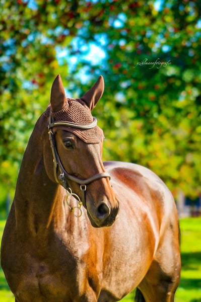 Galaxis is a 12-year-old Holsteiner mare (by Clarimo out of Caribik) seeking a new challenge. She is a blood-type show jumper with experience up to 125 cm and has placed up to 115 cm. Her handling is completely reliable and straightforward. She loves all ground work and is easy to manage in the field. She also loads into the trailer without issues, except in trailers where she tends to move forward with her head first. I am looking for a home where she can be appreciated both as a leisure horse and as a sport horse. Patience is essential, as she can be quite challenging at times. This mare is not suitable for beginners and is better suited for advanced amateurs or someone who enjoys taking on challenges.