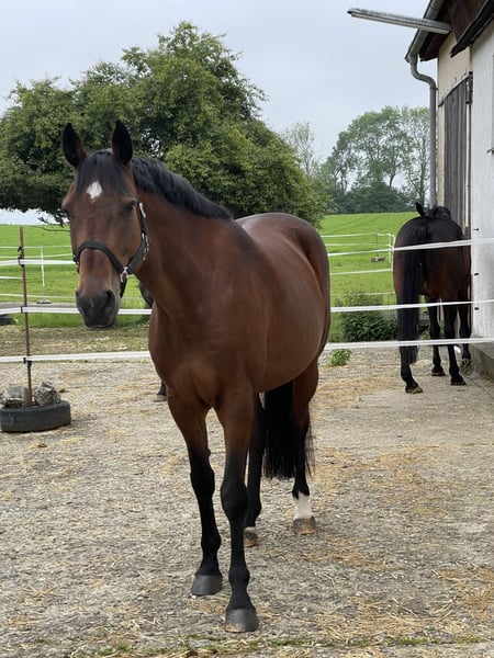 Prämierte (50 Pkt) Holsteiner Sportstute Stamm 4510 ; Im März 2025 hat sie ein tolles Stutfohlen bekommen von „Comme Cavelle“ Junghengst von Richard Vogel. Die Stute hat ein ganz korrektes Gebäude, mit 3 sehr guten Grundgangarten. Sie wurde in Sppf A und L vorgestellt. Sehr angenehmer Charakter und Umgang.