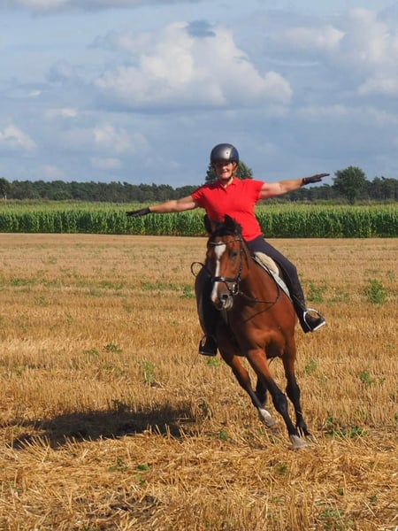 Lordabella, geb. 2011, war in ihrer ersten Karriere erfolgreiche Zuchtstute. Sie hat bereits einen Nachkommen, der bis S** Springen in der Schweiz erfolgreich ist, weitere Nachkommen springen bereits bis M** und sind in Springpferdeprüfungen erfolgreich. Zwei Nachkommen sind bei uns zu besichtigen. Diese sind sehr menschenbezogen, motiviert und leistungsbereit, leichtrittig, vorsichtig am Sprung und einfach im Umgang. Bella selbst ist ebenso lieb im Umgang. Nach 7 Fohlen konnte ich sie wieder "sportlich" nutzen und habe sie langsam als Reitpferd aufgebaut. Nicht viele Zuchtstuten machen das so bereitwillig und motiviert mit. Sie ist selbst ebenfalls immer motiviert, fleißig und sehr menschenbezogen. Im letzten Jahr ist sie erfolgreich mit meiner Nichte auf Turnier gestartet. Sie reitet sie mittlerweile auf E-A Niveau. Ich selbst bin sie zu Hause bis L Niveau gesprungen. Ich kann sie mir sowohl wieder als Zuchtstute als auch tollen Freizeitpartner (auch "Mutter-Tochter"-Gespann) vorstellen. Sie läuft bei uns im Paddocktrail barhuf, dabei ist sehr gut verträglich mit den anderen Pferden. Schmied, Verladen, Ausreiten, Handarbeit ist alles kein Problem. Es ist auf gute Heuqualität zu achten, da ist sie etwas empfindlich. Ansonsten war sie noch nie krank oder verletzt. Gern telefonisch bei Interesse unter 0177-55075854 melden. Bitte nur bei ernstgemeintem Interesse melden. Die Stute wird nur in gute Hände und in 5* - Zuhause abgegeben. Videos der Nachkommen und Erfolgsübersicht sind über ClipmyHorse und Rimondo zu finden. Ein Video von Bella stelle ich noch ein.