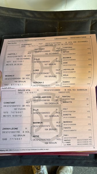 Diese auffällig brave Stute überzeugt mit einem einwandfreien Charakter Sie hat bereits viele erfolgreiche Nachkommen und ist aktuell tragend von Kartals Emerald Sie ist sehr brav im Umgang und steht aktuell mit weiteren Zuchtstuten auf der Weide. Der Hengst Kartal´s Emerald mit einer 8,62 unter den Top 3 bei seinem Kurzveranlagungstest für 4-jährige Hengste in Vechta 2025. Galoppade und Rittigkeit wurden mit einer 8,6 belohnt, herausragend waren Springanlage und Leistungsbereitschaft. Diese wurden mehrfach hervorgehoben und mit jeweils 9,0 benotet, Welches gleichzeitig die Tageshöchstnote in beiden Bereichen darstellte. Bei weiteren Fragen melden Sie sich gerne telefonisch unter: 0177/2409954