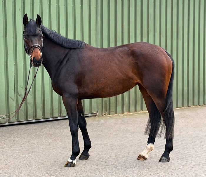 This daughter of the top sire Van Gogh presents herself as a highly modern show jumping horse with great potential. She combines a very current, performance-oriented pedigree with the proven foundation of one of the most renowned Holstein breeding farms. In her first jumps under saddle, she demonstrates exactly what one expects from a young prospect: carefulness over fences, plenty of scope, and a natural sense of overview. She impresses with elastic canter, good balance, and a positive work attitude. In type, she fits perfectly into the modern sport horse category: she is long-legged, blood-typed, and has an athletic silhouette. A horse that already shows quality today. From a breeding perspective, this mare is also particularly interesting, as she comes from a proven Holstein dam line that has produced sport successes and sought-after sires such as the former winning stallion Larcon over generations. Thus, she offers an exciting option not only for sport but also for future breeding. Current video Photo from 2024 (2 years old) Please contact only by phone at the provided number.
