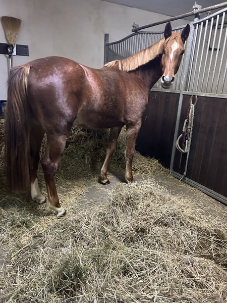 Verkaufe elegante Holsteiner Stute – Springtalent mit viel Potenzial! Zum Verkauf steht eine wunderschöne Holsteiner Stute, geboren im Jahr 2021. Mit ihrem ansprechenden Fuchsfell und ihrer beeindruckenden Erscheinung zieht sie alle Blicke auf sich. Sie hat ein Stockmaß von 165 cm und ist somit perfekt für ambitionierte Reiter, die ein sportliches und vielseitiges Pferd suchen.Leider hatte sie im Fohlenalter durch einen Tritt ihrer Mutter ein Auge verloren, sie kann gut mit dem Verlust umgehen Sie ist hat viel Talent sowie eine vielversprechende Springveranlagung. Die Stute ist freundlich, lernwillig und besitzt ein ausgeglichenes Wesen – ideal für den Turniersport oder den anspruchsvollen Freizeitreiter. Bei Interesse stehe ich gerne für weitere Informationen und eine Besichtigung zur Verfügung. Ein echtes Schmuckstück für jeden Springreiter!