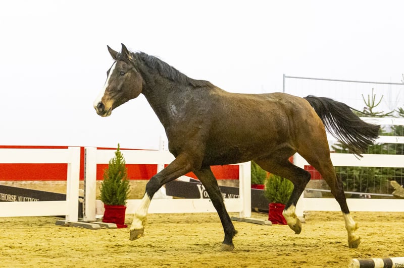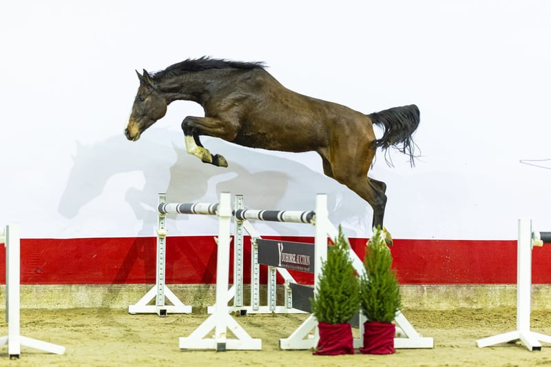 Vicca is a modern, light-footed mare with a strong hindleg and correct jumping technique. She shows quality, blood and a natural engine. She is quick off the ground and demonstrates a clean, correct push at the jump. A promising sport mare who can continue to grow with training and experience. Her sire is unknown due to an accidental covering in the field, but she comes from a highly reputable breeder — a clear indication that the sire’s genetics are likely to be strong as well. Ultimately, Vicca speaks for herself: her dam Casaltinajumped 1.45m, and those athletic qualities are clearly visible in this mare. Vicca comes from one of the largest and most respected sporthorse breeders in Germany. She is completely unbroken and knows no more than a halter. Until now she has lived only in the field, giving her time to grow correctly and develop strength in her body and legs. An honest and pure young mare who is now ready to begin her training. With her type, natural talent and proven damline, Vicca offers significant potential — both as a sporthorse and as a future broodmare. This horse was previously auctioned, but as the buyer did not meet his obligations, the payment was never completed. The horse itself is exactly as described. Perhaps it’s no coincidence the previous buyer didn’t pay — this horse was simply meant for you!