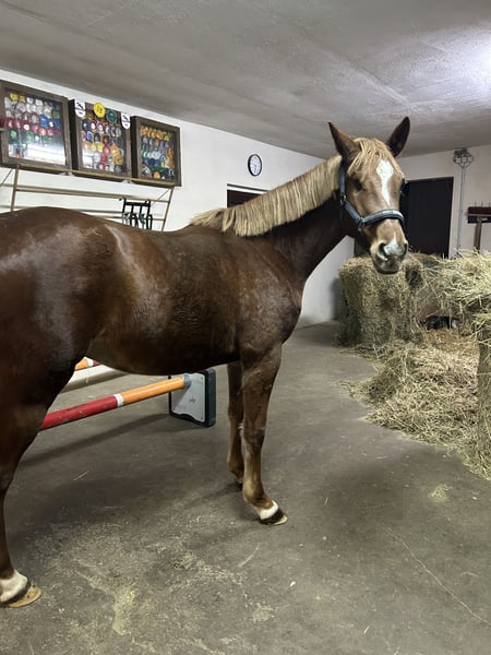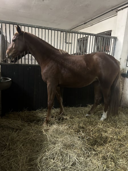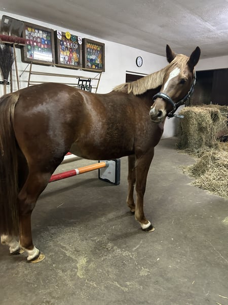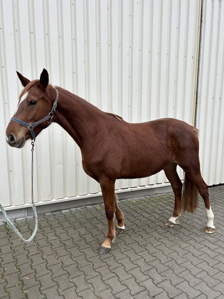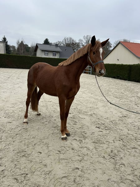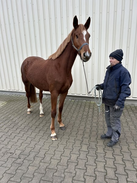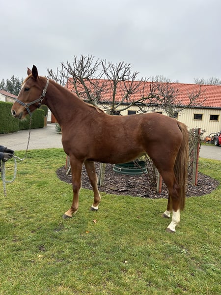 Elegant Holsteiner Mare – Show Jumping Talent with Great Potential! For sale is a beautiful Holsteiner mare, born in 2021. With her striking chestnut coat and impressive presence, she turns heads wherever she goes. She measures 16.1 hh and is perfectly suited for ambitious riders seeking a sporty and versatile horse. Unfortunately, she lost an eye as a foal due to a kick from her dam, but she handles the loss well. She possesses considerable talent and a promising jumping aptitude. The mare is friendly, eager to learn, and has a balanced temperament – ideal for competition or demanding leisure riders. Please feel free to contact me for more information or to arrange a viewing. A true gem for every show jumper!