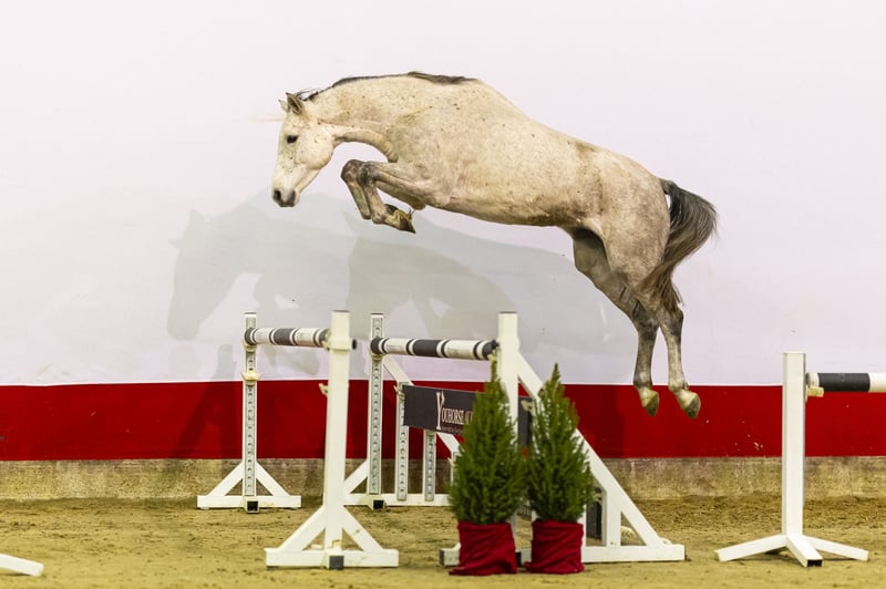 Cleo is a modern-built mare with an elegant outline and plenty of suppleness. In free jumping she shows a big canter, good scope and a beautifully flowing jump. She does everything with ease and demonstrates natural balance and correct use of her body. Her Clarimo x Crown Z pedigree provides a strong foundation for sport and gives her both presence and quality. She is a direct daughter of Clarimo, a stallion who competed at the highest level and has produced numerous successful sporthorses. The damline is equally interesting, having produced several 1.55m horses and being related to influential stallions such as Omano and other proven sires. Cleo was bred by one of the largest and most reputable sporthorse breeders in Germany, adding further value to her origin. Cleo is completely unbroken and knows no more than a halter. She has spent her life in the field so far, giving her time to grow correctly and develop strength in her body and legs. She is an honest, pure mare now ready to begin her training. With her conformation, pedigree and natural ability, Cleo holds significant potential — both as a sporthorse and as a future broodmare.