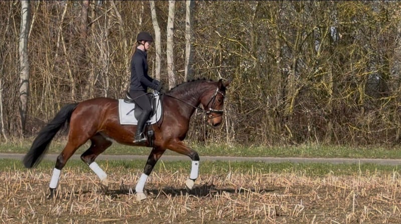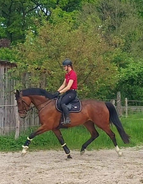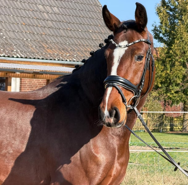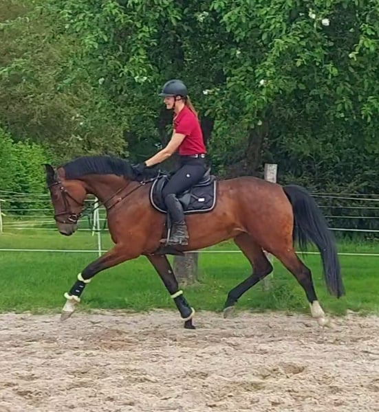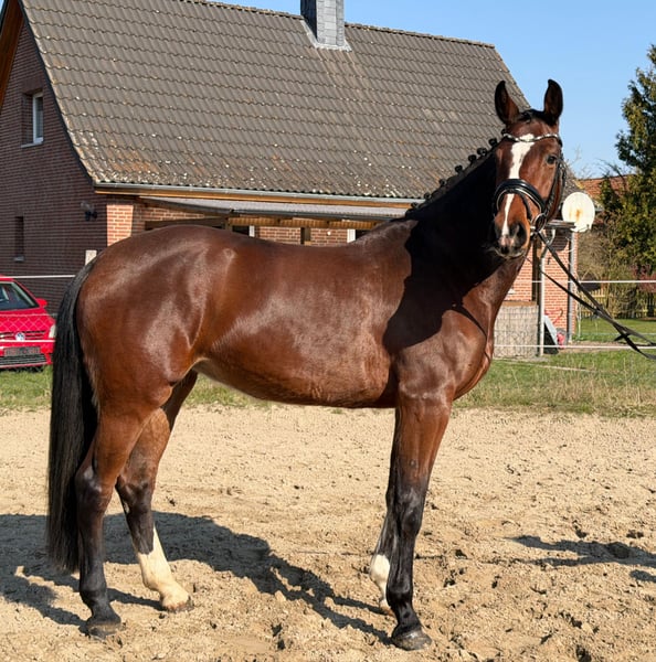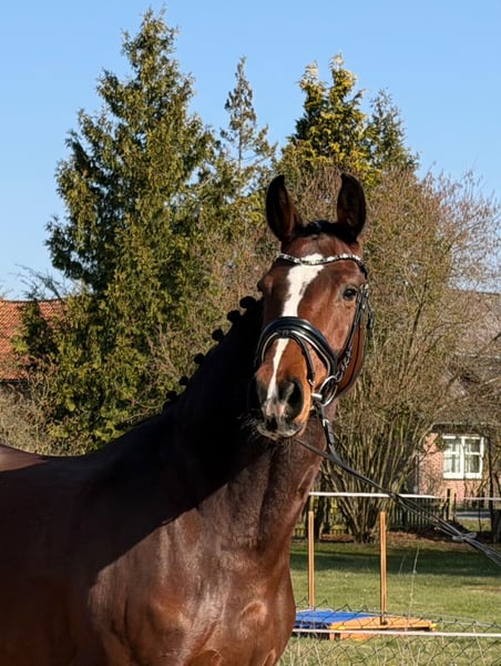 For sale is a stunning 5-year-old Holsteiner mare by Dinken out of Calido. Dailydream is an impressive mare, showcasing three very good basic gaits and a beautiful side profile. She is a dream to ride, impressing with her rideability and work ethic. Additionally, she demonstrates talent and caution during her first small jumps under saddle. In handling, she is uncomplicated and very people-oriented. A great young horse for the ambitious rider. As she is still at the beginning of her training, she is not suitable for beginners. Good X-ray results are available. Approximate height: 16.1 hh. For videos and further questions, please contact me exclusively by phone at 01752555635.