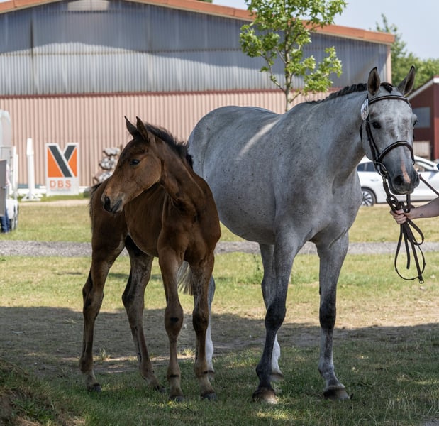 Direct from the breeder: 6-year-old Holsteiner mare, bloodline 2495 For sale is a 6-year-old Holsteiner mare with an approximate height of 16.1–16.2 hh. The mare has been lightly backed in the past, then had a foal, and has recently been in training again to further her education. Please do not expect too much at this stage! Training level: light, not fully backed. She is a very sensitive, refined mare and somewhat environmentally cautious – therefore not suitable for beginners. Currently, her riding education is still in the early stages, as her muscles and balance need to be developed further after the foal period. Those who give her the necessary time will have a horse with significant potential for development. Character-wise, she is absolutely lovable, almost “Labrador-like,” very affectionate and strongly attached to her handler. At the same time, she is alert and lively, making her especially interesting for ambitious riders, as she already demonstrated great scope and awareness during her first free jumping sessions. ✔️ Directly from the breeder, never passed around ✔️ Excellent breeding conditions ✔️ Registered as a broodmare with the Holsteiner Verband, takes foals easily, foal was very correct and well-behaved, quickly found a new home ✔️ Regularly dewormed, vaccinated, teeth checked, and presented to the farrier ✔️ Registered as a competition horse The mare was examined comprehensively at the age of 3 before starting under saddle, including gait analysis and flexion tests, with no abnormalities detected. Only chips were found in the hind fetlock joint, which were removed prophylactically and without complications. A new TÜV (health check) can be arranged upon request. Pedigree with proven lineage: Several late developers are found in her bloodline, all of whom showed excellent progress in show jumping with proper support. We are familiar with multiple generations as breeders. Existing surgical insurance can be transferred if desired. Location: 17373 The mare is being offered for sale due to sufficient offspring and no further riding ambitions. She can also be bred again upon request. Price will increase with further training and potential competition appearances. ➡️ An exciting, affordable investment for someone with time, patience, and a feel for a sensitive horse. Contact: +49 173 4683761