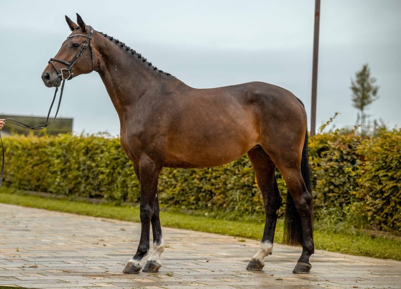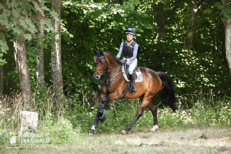 Ecco la collezione e la registrazione online: https://auktion.pzvbw.de/auctions IVA 0 % Maga di movimento e salto, da una famiglia di prima classe. La sua madre, vincente nel settore del concorso completo, ha prodotto quattro cavalli da salto internazionali con successi fino a 1,60 m. Dopo aver avuto due puledri, ha completato la sua prima stagione di gare. Vincitrice in prove di salto, piazzata in prove di dressage e di cross-country per giovani cavalli.