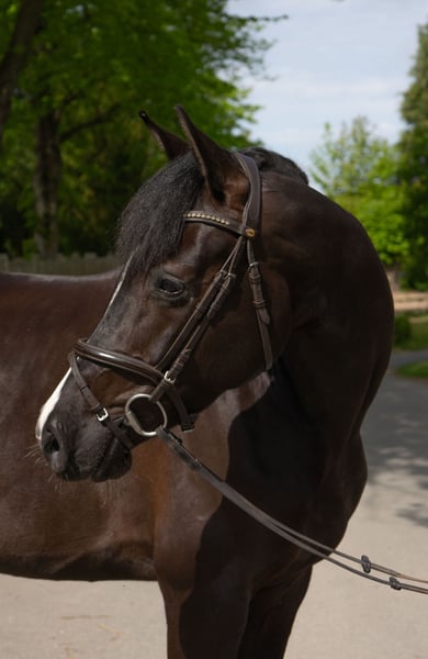 Zum Verkauf steht diese elegante Holsteiner-Stute aus unserer Familienzucht. Die wunderschöne Noëlle wurde 2020 bei uns geboren und schonend altersgerecht ausgebildet. Sie bringt viel Potenzial mit, hat eine hervorragende Springmanier - also eine typische Casall-Tochter. Die Stute zeigt sich im Springen äußerst talentiert, ist aufmerksam und ehrlich. Sie ist sehr rittig und klar im Kopf. Turniermäßig konnte Noëlle sich im letzten Jahr mehrfach in Springpferdeprüfungen Kl. A und A** platzieren. In diesem Jahr konnte sie bereits eine Springpferde-L (110cm) und eine Springpferde-M-Platzierung (120cm) sammeln. Auch Ausritte sind kein Problem. Mit anderen Pferden ist sie gut verträglich. Noëlle ist ein echtes Schmuckstück für ambitionierte Reiter, die ein zuverlässiges und talentiertes Springpferd suchen. Sie ist gesund, geimpft und regelmäßig entwurmt. Röntgenbilder wurden 3-jährig erstellt und können geschickt werden. Sie sind ohne Befund. Melden Sie sich gerne, wenn Sie weitere Fragen haben oder ein Probereiten vereinbaren möchten.