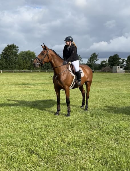 Zum Verkauf steht meine 6-jährige Holsteiner Stute Destina (v. Del’Arko x Chaman). Destina wurde vierjährig schonend angeritten und absolvierte im Alter von fünf Jahren ihre ersten beiden Turniere sowie Ausritte, bei denen sie sich brav zeigte. In diesem Jahr konnte sie aus zeitlichen Gründen leider nicht weiter gefördert werden, weshalb ich mich schweren Herzens zum Verkauf entschieden habe. Aufgrund ihres jungen Alters sucht Destina einen erfahrenen und einfühlsamen Reiter/in, der ihr auch im täglichen Umgang Sicherheit gibt und sie weiter fördert. Sie ist artig beim Hufschmied, regelmäßig entwurmt und dem Zahnarzt vorgestellt. Sie lässt sich problemlos auch alleine verladen. Aktuell befindet sie sich im Aufbautraining. Bei ernsthaftem Interesse und weiteren Fragen stehe ich gerne telefonisch oder per WhatsApp zur Verfügung.