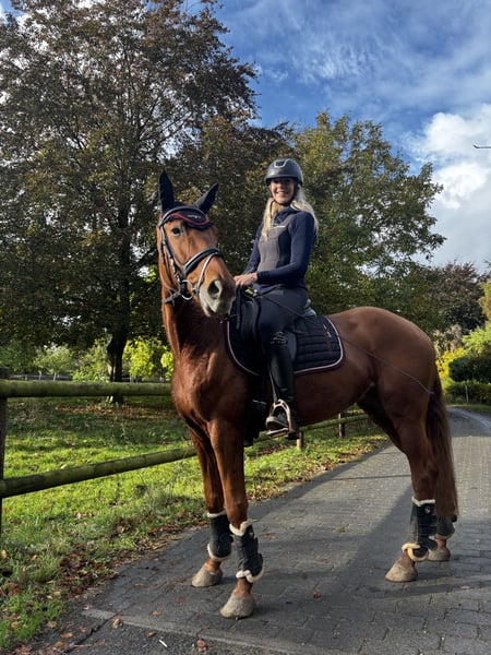 Verkaufe elegante Holsteiner Stute – ideal für Springreiter/ Dressurreiter oder dem ambitionierten Freizeitreiter Diese hübsche Fuchsstute wurde im Jahr 2018 geboren und überzeugt durch ihr freundliches Wesen. Mit einem Stockmaß von 155 cm ist sie perfekt für ambitionierte Reiterinnen und Reiter, die eine zuverlässige Partnerin suchen. Sie bringt die typischen Holsteiner Eigenschaften mit: Beweglichkeit, Springvermögen und eine hervorragende Arbeitseinstellung– diese Stute zeigt stets ihr Herz aus Gold. Sie ist seit 6 Wochen im Training und wird als angeritten verkauft. Bei Interesse stehe ich gerne für weitere Informationen und eine Besichtigung zur Verfügung.