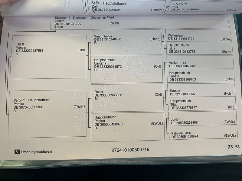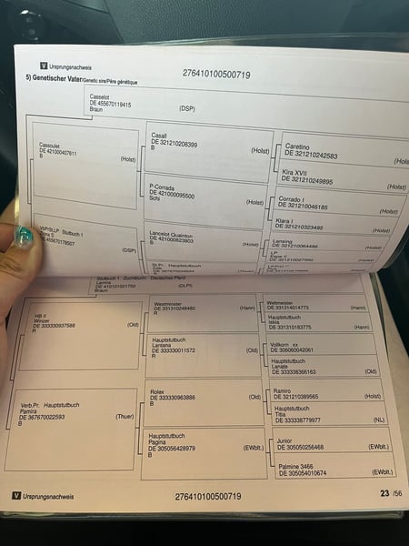 Te koop staat de 7-jarige springmerrie Cleo, een modern en prestatiegericht sportpaard met eersteklas Holsteinse bloedlijnen. Met een stokmaat van ongeveer 1,63 m presenteert ze zich compact, atletisch en uiterst responsief. Cleo is momenteel veilig op A-niveau opgeleid. In de dressuur wordt ze solide getraind en heeft ze al een plaats behaald in een A-dressuurwedstrijd. In het springen overtuigt ze door haar veel motivatie, go en een duidelijke sportieve instelling. Afstamming Haar bloedlijn spreekt voor zich: Cleo is afkomstig van Casselot (v. Cassoulet – Casall). Aan moederskant combineert ze bewezen prestatiebloedlijnen zoals Winzer, Westminster, Weltmeister en Ramiro. Deze bloedvoering staat al decennia bekend om vermogen, techniek, bereidheid tot presteren en internationale springkwaliteit – daarmee is Cleo zowel sportief als genetisch zeer interessant. Karakter & Rittigkeit Onder het zadel toont Cleo zich gevoelig, attent en prestatiegericht, altijd voorwaarts en werkwillig. Ze is geen beginnerspaard, maar richt zich duidelijk op een ambitieuze ruiter die op zoek is naar een talentvol springpaard met perspectief. In het terrein is ze veilig en makkelijk in de omgang. In het dagelijks gebruik is ze braaf en absoluut betrouwbaar bij het laden. Gezondheid Een AKU-rapport is momenteel nog niet aanwezig. Cleo wordt regelmatig gereden en is klaar voor de volgende stap in de sport. Ze biedt een aantrekkelijke combinatie van een moderne uitstraling, bewezen prestatiebloedlijnen en sportieve instelling – ideaal voor de ambitieuze amateur of voor de start in de springsport met perspectief. 📍 Meer informatie, foto’s en video’s op aanvraag.