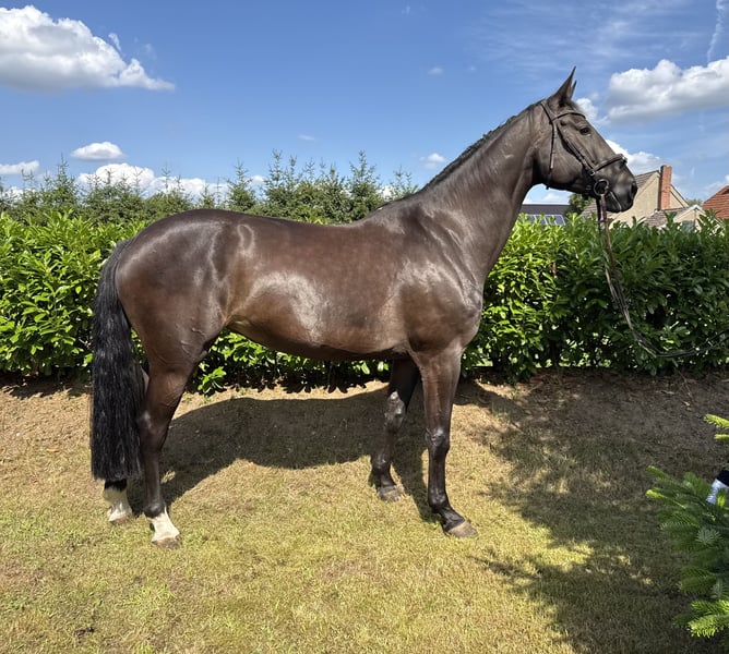 À vendre, une magnifique jument Holsteiner, née en 2019. Elle se présente avec un élégant pelage noir brun et mesure 176 cm au garrot. Cette jument talentueuse est particulièrement adaptée au saut d'obstacles et montre déjà des capacités prometteuses dans ce domaine. Elle est prête pour le parcours. Avec son tempérament équilibré et sa volonté d'apprendre, elle convient aussi bien aux cavaliers expérimentés qu'aux débutants souhaitant développer son potentiel. Elle est bien éduquée, douce dans ses interactions et possède un caractère amical. Ses excellents mouvements et son allure athlétique en font un véritable plaisir pour les yeux. Pour toute question ou pour plus d'informations, n'hésitez pas à me contacter. Venez nous rendre visite et laissez-vous séduire par cette superbe jument !