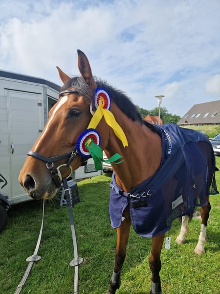 Attention show jumpers! For sale is an 8-year-old mare by Quasimodo vd Molendreef x Cascadello. Quanja is approximately 1.67m tall and is currently successful at M* level. Quanja is uncomplicated to handle and clear-headed; even after a few days of rest, she can be ridden again without any issues. She is familiar with box stalls, as well as open stabling and pasture. Currently, she is in an all-mare herd and has never had any problems in any herd. She is currently barefoot but is also accustomed to being fully shod. Quanja is looking for an experienced and confident rider; she is definitely not a horse for beginners or re-riders. Her current rider compares the feeling in the course to "flying." She took over the mare a year ago and was able to achieve her first successes shortly after a brief acclimatization period. Unfortunately, the rider's personal circumstances have changed, and she must part with Quanja. Now, here comes the little BUT… Quanja had a gastric ulcer in the past, which has been fully treated; however, she requires permanent access to hay and should not have long breaks between meals. If you have read this far and have the right home for Quanja, please feel free to get in touch. To avoid riding tourism, we would like to charge €30 for trial rides, which will be deducted from the purchase price.