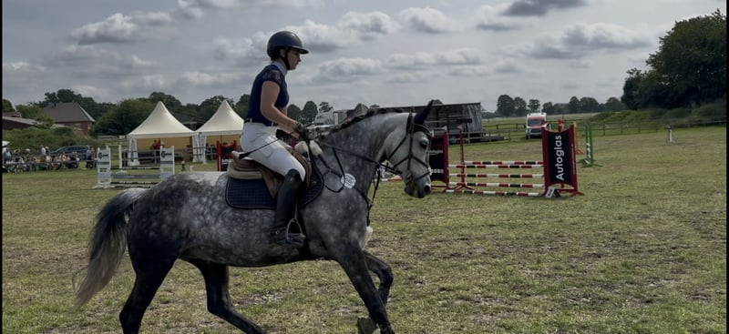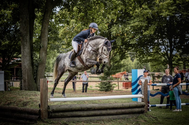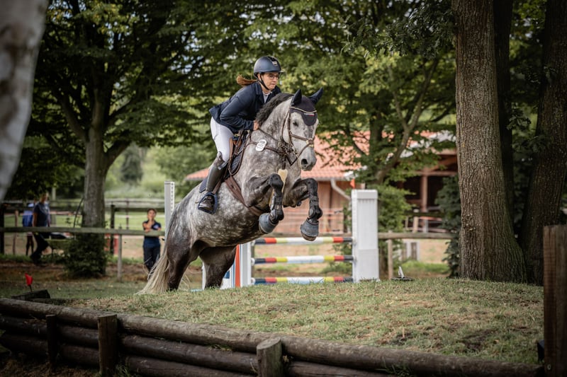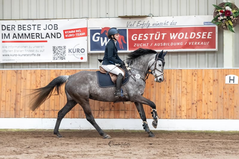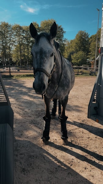 With a heavy heart, I am offering my beautiful 9-year-old Holsteiner mare (1.61 m) for sale. She is sired by Dio Cabrio x Clarimo ASK. She is well-behaved both in handling and under saddle. She is used to being ridden by beginners and children, but she wants to be challenged. She is good in a group as well as alone in the field. She is familiar with cross-country jumps. She has placed up to class L in show jumping and can show several wins and placements in class A, with scores up to 8.4. However, she has been presented less at competitions in recent years. She loads calmly onto the trailer and is absolutely well-behaved and relaxed in unfamiliar environments. She is used to standing with both mares and geldings. She is familiar with both box and pasture boarding. A trial ride is possible by arrangement. A fee of €25 will be charged for the trial ride, which will be gladly refunded upon purchase. If you are interested, please feel free to send a private message.