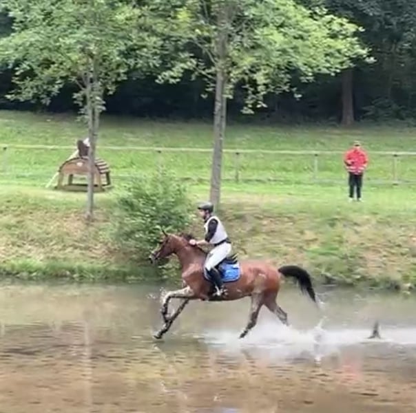 Ivy 9-jährige (ca 167 cm) Holsteiner Stute von Hermes de Lux x Aloube Z Ivy ist dieses Jahr VL und CCI 2* platziert. Ivy hatte 5 j. ein Hengstfohlen von Central Park, welches über den OS-Verband mit Eliteauszeichnung versehen wurde. Ihr jetzt 4 j. Nachwuchs kann gerne bei mir angeguckt werden. Ivy ist von mir selbst gezogen (Mutter lief mit mir bis S-Springen) und nur als Fohlen in einer Fohlengruppe gewesen. Ende 2 j. ist Ivy dann zu mir gekommen. Dadurch ist Ivy erst 6 j. Auf Turnier vorgestellt worden und eigentlich als reines Springpferd ausgebildet worden. Durch einen Zufall sind wir dann in der Vielseitigkeit gelandet, so dass Ivy Ende 8 j. ihre erste VS lief. Ihre Stärke liegt in der VS im Springen. Da ist uns dieses Jahr kein Springfehler unterlaufen und konnten somit das mittelmäßige Dressurergebnis etwas ausgleichen (haben aber auch schon eine 36er Dressur geritten). Dressur ist aber auch nicht meine Paradedisziplin. Im Gelände sollte Ivy sportlich geritten werden. Ideal wäre ein/e Junior/in die z.b. vom Pony auf Pferd umsteigen möchte oder zweigleisig fahren möchte und so mit Ivy zusammenwachsen könnte. Im Winter läuft Ivy barfuß und nur während der VS-Saison mit vier Eisen. Bei ernsthaften Interesse verschicke ich gerne ein Video. Preis: 32.000 €
