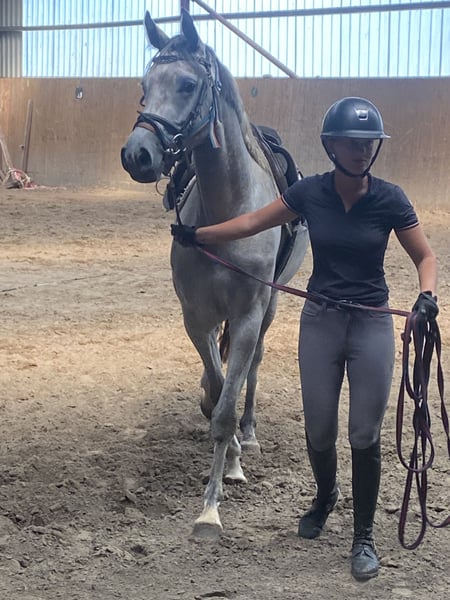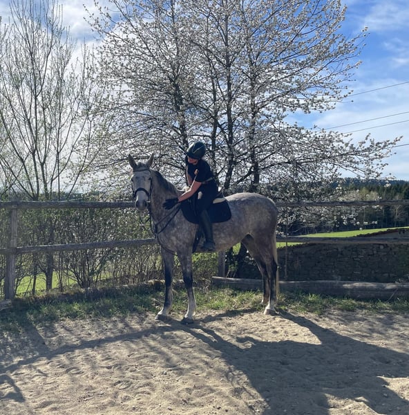 An eight-year-old Holsteiner mare from the lineage 1446. Through her maternal line, she owes her enormous jumping ability to Corrado I and Landlord. The Thoroughbred has given her toughness and endurance. Korifee was backed as a three-year-old and then sent to the pasture while in foal. Her foal was allowed to stay with her for a year, so she went into training in spring 2023. Her focus is clearly on jumping, although we have preferred a slow build-up for health reasons. Korifee last competed in 1.20m show jumping in 2024. She has mostly been ridden by young women, who were however very experienced. Korifee is not a beginner's horse. According to her last rider, she is a fighter who is not afraid of anything, with endless energy. As a leisure horse, she is underchallenged, so we have decided to find her a new owner who can do her justice and fully utilize her potential.