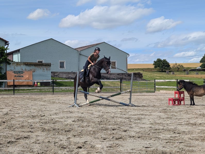 Aus tiefstem Herzen - und nach 5,5 gemeinsamen Jahren - suche ich für meinen wunderbaren Wallach Luksus ein neues, dauerhaftes Zuhause. Er ist 9 Jahre alt und ca. 1,65 m groß. Die Entscheidung fällt mir unendlich schwer, doch aus zeitlichen und familieren Gründen kann ich ihm leider nicht mehr gerecht werden. Luksus ist kein Pferd für Jedermann - aber ein Pferd fürs Herz. Er ist überwigend sensibel, aber auch manchmal etwas temperamentvoll. Daher benötigt er eine feste Bezugsperson. Gegenüber fremden Menschen - zeigt er sich anfangs zurückhaltend, gewinnt aber mit Geduld und ruhiger Ausstrahlung schnell Vertrauen. Dann ist er verschmust, anhänglich und sehr menschenbezogen. Eckdaten: - Größe: ca. 1,65 m - Geschlecht: Wallach - Ausbildungsstand: A-Niveau (Dressur), Springen nur freizeitmäßig - Haltung: Offenstall erwünscht - Gesundheit: aktuell Vorne Eisen (sonst eigentlich Vollbeschlagen). Hat zwei instabile Knie und hat auf einer Seite Knieathrose (Zufallsbefund). Bei ausreichendem Training/Bewegung zeigt er jedoch keinerlei Beeinträchtigung. Er ist somit voll belastbar. Wenn er länger am Stück steht und mit ihm nicht gearbeitet wird, besteht das Risiko, dass es ihn wieder beeinträchtigen könnte. Besonderheiten & Charakter: - Sehr bewegungsfreudig und verspielt -Sozial verträglich mit anderen Pferden - Im Gelände ist er sehr gerne unterwegs (hat hier viel Go) - Kein Anfängerpferd - sensibel, reagiert auf Umweltreize, bleibt aber händelbar - Verladefrom: steigt anständig ein - Braucht einen einfühlsamen, sicheren Menschen mit Erfahrung, Geduld und Zeit - Kein Gewichtsträger Wird nicht verkauft an: - Schulbetriebe - Händler - Personen ohne Pferdeerfahrung Was ich mir wünsche: Ein liebevolles, stabiles Zuhause mit Offenstallhaltung, viel Zeit, Ruhe und einem Menschen, der sich auf Luksus sensiblen Charakter einlassen möchte - ohne Druck, aber mit Herz. Ein treuer Freund, der seinen Menschen sehr liebt, wenn man ihn wirklich sieht. Zubehör ist im Preis mit enthalten. Sattel (Dressur Kiefer), Trensen, Decken usw... Wenn du denkst, du bist der richtige Mensch für Luksus und möchtest ihm ein dauerhaftes, liebevolles Zuhause bieten, dann melde dich gerne mit einer aussagekräftigen Nachricht.