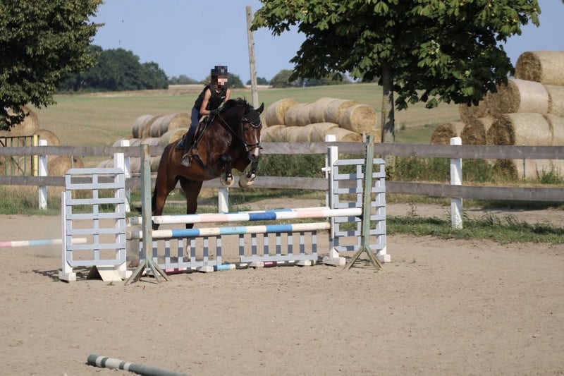 Due to time constraints, this Holsteiner gelding is available for sale directly from the breeder. He enjoys jumping both in the arena and in the field, showing promising abilities in this area. He has a good education and is well-behaved and reliable both in handling and under saddle. Cerberus is familiar with competitions (he loads and gets ready alone), clinics, trail rides, and both the outdoor and indoor arenas. He remains calm and fearless everywhere and is always manageable in unfamiliar surroundings. For the past two years, he has been ridden by a young girl and has been presented at competitions. Therefore, I can very well imagine him as a family horse. He is always careful with children and inexperienced riders. Whether you are looking for a new partner for competition or a loyal leisure companion, this gelding will impress you. If interested, extensive equipment (bridle, double bridle, dressage saddle, blankets, etc.) can be purchased as well. If you have any questions or would like more information, please feel free to contact me.