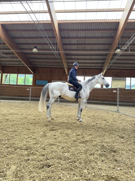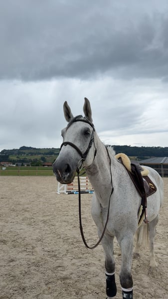 Schweren Herzens haben wir uns entschieden für unseren 12-jährigen Holsteiner-Wallach ein neues Zuhause zu suchen. „Mimi“ ist absolut lieb im Umgang und liebt lange Ausritte allein oder in der Gruppe. Auch mit anderen Pferden ist er sehr lieb. Bis letztes Jahr waren wir gemeinsam im Springsport national und international unterwegs, jedoch bedeuteten die oft langen Fahrten und die Turnierathmosphäre jeweils viel Stress für ihn. Deswegen würden wir uns für ihn einen neuen Möhrchengeber ohne Turnierambitionen im Springsport wünschen. Neben dem Springen haben wir auch an verschiedenen Bodenarbeitskursen oder Patrouillenritten teilgenommen und Mimi war immer sehr motiviert bei der Sache. Durch seine grossrahmigen GGA könnten wir ihn uns auch im Viereck gut vorstellen. Er ist fein zu reiten und stets motiviert sowie sehr aufmerksam. Da er auch etwas sensibel sein kann, wünschen wir uns für Mimi jemanden mit viel Einfühlungsvermögen und Geduld. Er ist verlade- und schmiedefromm sowie brav zum Scheren Da Mimi mein absolutes Herzendpferd ist, wünsche ich mir einen liebevollen Endplatz für ihn. Es gilt Platz vor Preis.