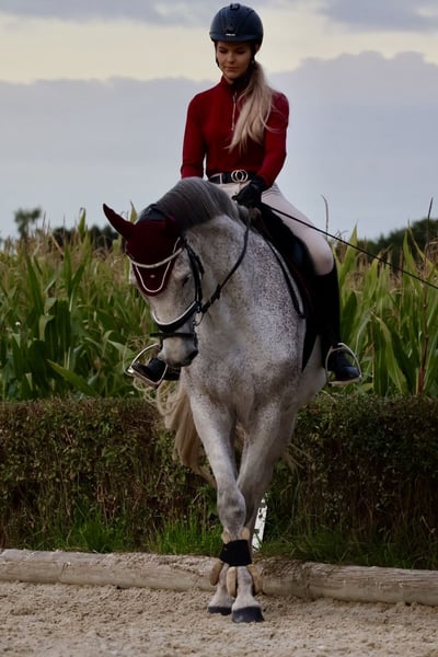 I am offering my 14-year-old, 1.60 m gelding by Coupé de Coeur out of Cento for sale. He has good gaits, can perform flying changes, extended trot, lateral movements, and makes a great jump. He has been ridden up to 1.10 m at home. He is eager to learn, has no issues with the farrier, and rides calmly alone or in a group in the terrain. He has no bad habits such as rearing or bucking. With him, anything is possible—riding without saddle or with a halter, photoshoots, groundwork, tricks, etc. He does crib occasionally, but this occurs rarely when kept in proper posture. I am looking for a confident and fair rider who can give him varied, enjoyable rides at leisure level. Equipment included (dressage and jumping saddle). Sale due to personal time constraints. Photos and videos available for serious inquiries. NO urgent sale!! Priority goes to the right home!