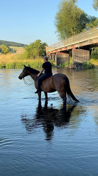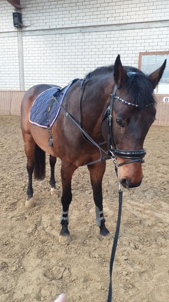 Schweren Herzens verkaufe ich aus Zeitgründen meinen 16 Jahre alten ca. 1,60 m großen Holsteiner Wallach. Im täglichen Umgang ist er recht unkompliziert, beim Reiten jedoch kein Anfängerpferd, sodass man sich reiterlich schon auf E-Niveau bewegen sollte. Ein früherer Sehnenschaden wurde fachgerecht behandelt und ausgeheilt. Schmied und Verladen sind kein Problem, zudem hat er auch Turniererfahrung. Bei Interesse und mehr Fragen meldet euch gerne.