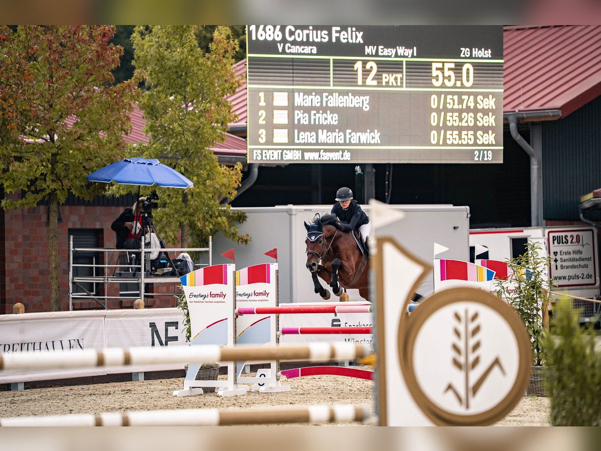 Nel percorso tra i colorati ostacoli, Felix si sente a casa. Allora si illumina e mostra tutta la sua motivazione. Nella gestione, Felix è sempre calmo, nulla lo turba facilmente. Carica il trailer senza problemi, si comporta bene dal maniscalco e dal veterinario ed educa i nostri giovani con una dolce fermezza nel paddock. Felix conosce la vita in branco nel paddock, così come quella in box. Per una passeggiata rilassata al passo o anche per un giro sportivo al galoppo attraverso il bosco, Felix si lascia volentieri convincere. Ma ciò che ama di più è saltare con un fresco slancio, che bisogna lasciargli, e con una visione e velocità che fanno battere il cuore. Chi vuole essere in testa nel barrage ha trovato il partner ideale in Felix. Chi desidera conoscere personalmente Felix o avere ulteriori informazioni, può scrivere volentieri un WhatsApp o un SMS in anticipo!