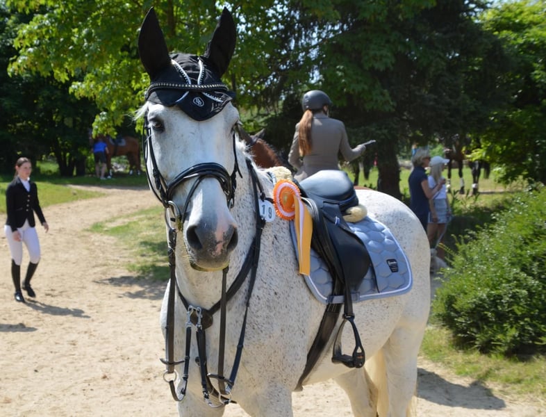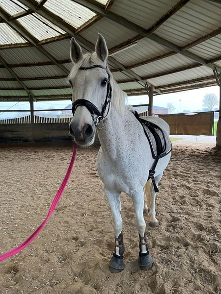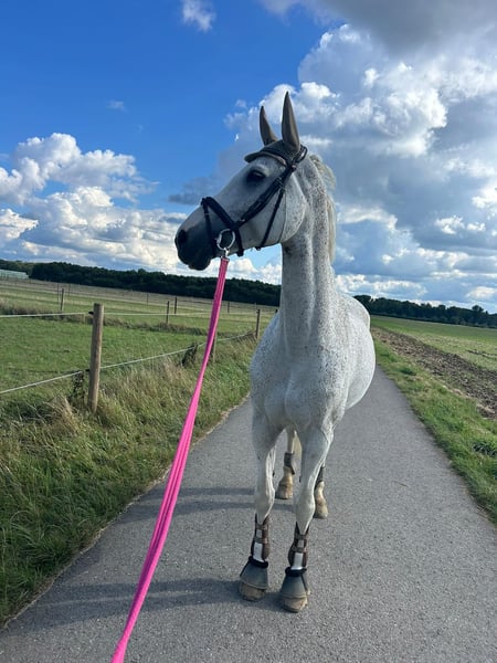 With a heavy heart, I am selling my beautiful and dearly loved gelding. Unfortunately, I can no longer do him justice due to health reasons. He is an absolute character horse – that’s what makes him so special. Once he has won your heart, he will go through fire for you. Show jumping is his greatest passion, although we haven't been able to focus much on it this year. Out in the field, he is very relaxed and an entirely reliable partner. He is not a horse for beginners, as he occasionally tests boundaries (e.g., stops, doesn’t move forward immediately, or resists cantering), but these are really just minor “tests.” With consistent handling and understanding, he is a wonderful partner. My children (aged 9 and 4) can ride him alone and lead him, as he is so well-behaved and balanced once you’ve gained his trust. Ideally, I would love to see him in a pasture with other horses or at least in a large box stall with plenty of movement and social contact. If you are interested or would like more information about my gelding, please feel free to contact me at any time.