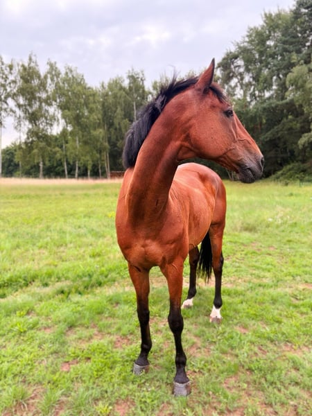 Für einen 16-jährigen Holsteiner-Wallach (ca. 165 cm) suche ich einen pferdeerfahrenen Menschen mit einem ruhigen, passenden Platz. Er ist ein sehr lieber, menschenbezogener Charakter, der den Kontakt zum Menschen liebt, auf Zuruf kommt und immer bemüht ist, alles richtig zu machen. Er möchte gefallen, arbeitet gerne mit und ist im Umgang freundlich und kooperativ. Ausritte, Platzarbeit und Bodenarbeit macht er gern, besonders in einer ruhigen, klaren Umgebung. Mit Zeit, Geduld und Liebe ist er auch gut als Lehrmeister für einen feinfühligen, erfahrenen Menschen vorstellbar. Er ist sehr fein geritten und hat Erfahrungen im Dressur - und Springbereich. Am wohlsten fühlt er sich in einer ruhigen Herde mit Großpferden. Aufgrund gemachter Erfahrungen wäre ein Platz ohne Ponys für ihn am passendsten. Er verdient ein Umfeld, in dem er ankommen und zur Ruhe kommen darf. ✨ regelmäßig geimpft & entwurmt ✨ regelmäßig osteopathisch betreut ✨ barhuf ✨ stets gesund ✨ passendes Equipment vorhanden Haltung: Offenstall oder Box mit Nachtaufstallung möglich. Besichtigung sehr gern, Abgabe nur in liebevolle, passende Hände – Platz vor Preis 💛