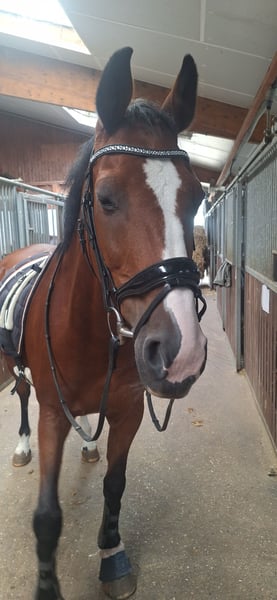 Aufgrund von Zeitmangel muss ich schweren Herzens meinen treuen Begleiter Rico abgeben. Rico ist ein 18-jähriger Holsteiner Wallach mit einem ganz artigen Gemüt. Er wird als gehobenes Freizeitpferd mit Turniererfahrungen angeboten. Er ist Geländesicher und verladefromm. Rico ist auch kinderlieb und lässt sich gerne von Kindern verwöhnen. Rico läuft barhuf und er ist kerngesund. Auch das Laufen mit Eisen sind ihm bekannt aber nicht notwendig. . Rico braucht kein besonderes Futter. Akutell bekommt er Hafer und Heulage. Er ist vollständig geimpft und entwurmt. Die Osteopathin bietet ihm regelmäßig ein schönes Wellnessprogramm. Er ist verträglich mit anderen Pferden. Dabei spielt es auch keine Rolle ob Wallach oder Stute. Mit Rico zusammen wird sein passender Dressur- und Springsattel angeboten. Zudem wird auch die Trensen mitgegeben. Beide Sättel wurden durch eine Sattlerin angepasst. Meine Tochter hat die Ausbildung angefangen und daher schaffen wir es nicht mehr uns so drum zu kümmern wie er es verdient hat. Gerne kann bei ernsthaften Interesse ein Treffen zum Kennenlernen vereinbart werden.
