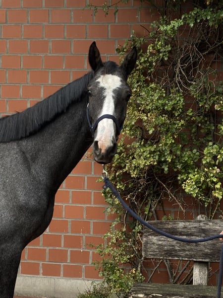 Upsi ist ein schlauer artiger Wallach aus eigener Zucht. Wir sind gerade dabei ihn einzureiten, dabei zeigt er sich gelehrig bei gutem Charakter. Beim Freispringen zeigt er sich vorsichtig und mit viel Vermögen ausgestattet.